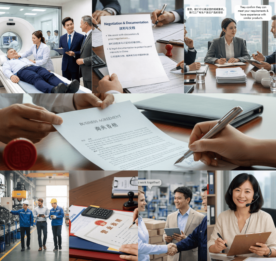 Identification and shortlisting of reliable Chinese suppliers, transparent communication, and trusted coordination between overseas buyers and local partners.